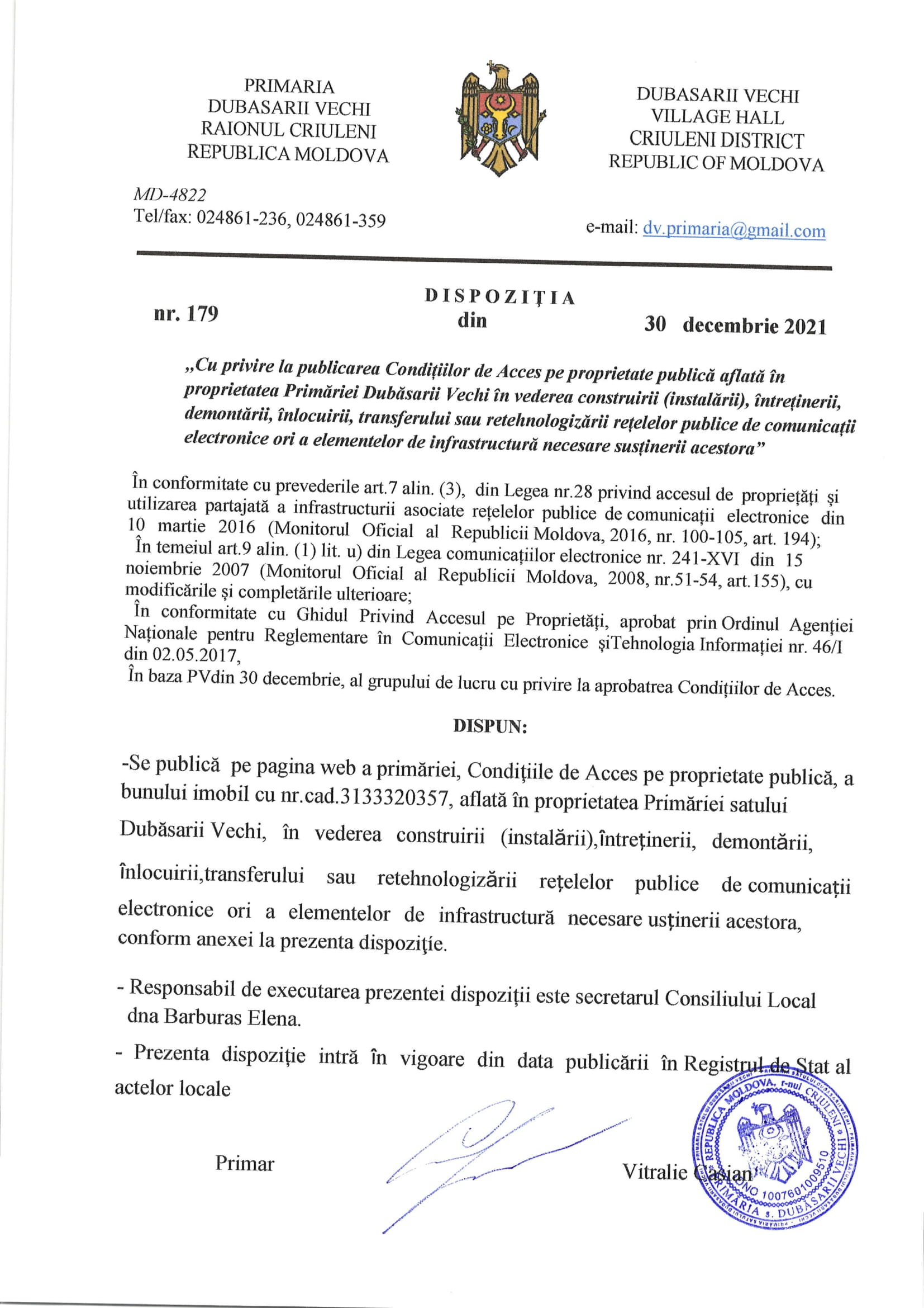 Dispozițiile primarului